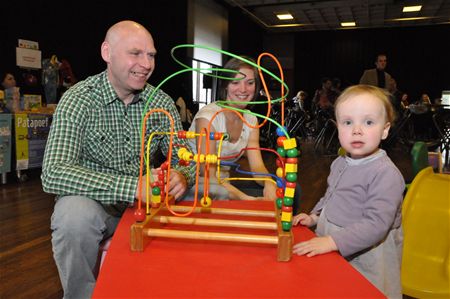 Vele tientallen baby's met hun ouders, broers en zusjes zondagmiddag op de Babyborrel van de gemeente. Dan zou je veel geween en gekrijs verwachten, maar niets was minder waar. Er hing een heel plezante sfeer, de baby's genoten van de aandacht, de spelletjes of hun maaltijdje. En ondertussen konden broertjes en zusjes naar hartenlust ravotten. De ouders konden zich informeren bij allerlei stands waarbij de nadruk lag op fairtrade en duurzaamheid. Ouders en kindjes amuseerden zich ook bij het poppenspel in de tent van het Berenhuis. (meer foto's)