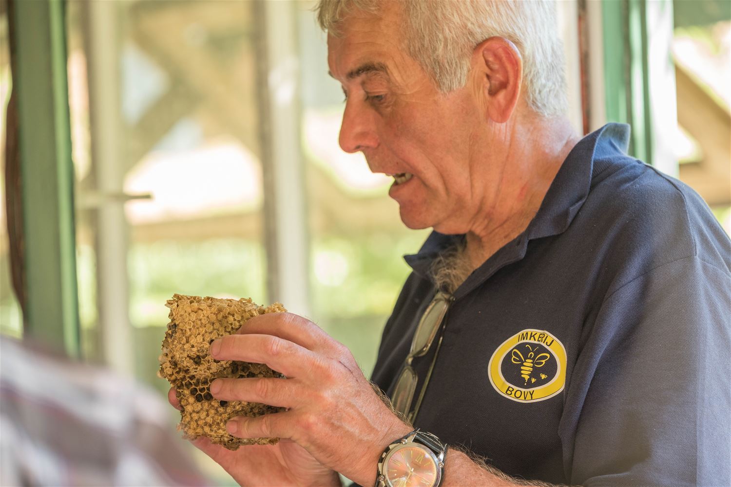 De imkers van Bovy hielden een bijenweekend. En bij deze weersomstandigheden en veel bloeiende bloemen hadden de bijen het ook nog toevallig bijzonder druk. De imkers legden aan jong en oud uit hoe de bijen hun werk doen, hoe de imkers alles nadien weer verzamelen en de honing slingeren. En om iedereen te overtuigen, lieten ze hen proeven van het overheerlijke, gezonde goedje. En de bijen, zij werkten voort. (foto’s Ann Jordens)46966