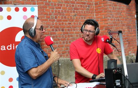 Radio 2 Limburg streek dus vandaag neer aan Den Lavaar. Het begon vanmorgen met de fietstocht met - zoals elke week - 24 luisteraars en deze keer in het gezelschap van Lisa del Bo. Even vreesden die een regenjasje nodig te hebben, maar gelukkig brak de zon er in de loop van de ochtend door. Zo werd het toch nog puffen en zweten, en toen presentator Daan Masset de fietsers en een heleboel andere aanwezigen om 12 uur voor de live-uitzending verwelkomde, was het al aardig heet. Weerman Eric Goyvaerts - blijkbaar een specialist luchtgitaar spelen - gaf aan dat ook de andere delen van het land van het mooie weer mochten mee profiteren. De rest van het programma zat doorspekt met leuke items en uiteraard met Lisa del Bo als eeuwig charmante gaste. (meer foto's van Ria De Clerck)22289