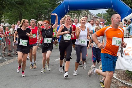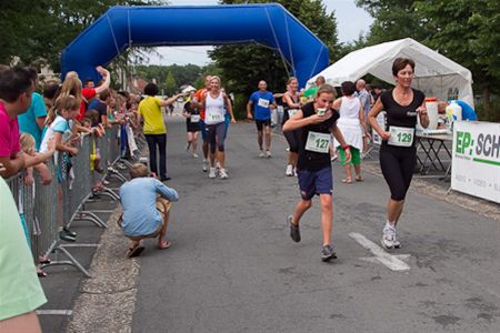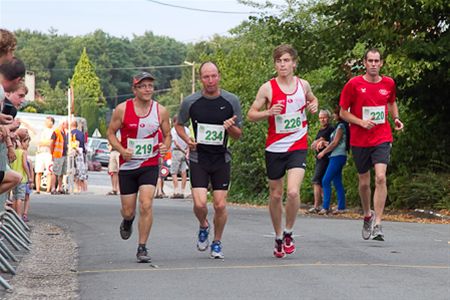 Onder al wat meer belangstelling vertrok om 19u30 de groep van 50 deelnemers voor de afstand van 5 km door de straten van Eversel. De drukkende warmte kon niet beletten dat de sfeer er goed inzat, ook bij de lopers, er was trouwens voor nogal wat randanimatie gezorgd. De uitslag van de 5 km mannen: 1. Put Jonas in 0:20:48 2. Willems Renaat in 0:22:12 3. Troonbeeckx Gunter in 0:22:29 vrouwen: 1. Lambotte Manon uit Luik in 0:24:43 2. Haugustaine Lore in 0:28:12 3. Kennes Elly in 0:29:59 (meer foto's van Gust Ischen)13695