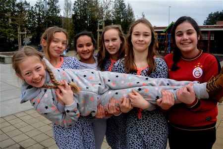Uiteraard kon ook de vrije lagere school van Berkenbos niet achterblijven op deze pyjamadag. Bijna alle kinderen en leerkrachten kwamen naar school in pyjama. Enkele leerkrachten gaven les in badjas. Iedereen vond het in ieder geval prettig. (foto's Rita Ramakers)39324