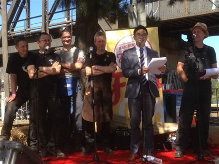 Vier smeden, onder wie Raf Nulens – geboren en getogen in Heusden - en zijn collega’s Patrick Pelgroms , Flip Vervoort en Klaas Remmen zijn al de hele maand in Australië. Ze hebben net een driedaagse masterclass 'siberian axeforging in damascussteel' gegeven in Melbourne. Dit weekend geven ze nog een smeeddemonstratie op het 'Melbourne iron art and blacksmithsfestival'. De vier zijn specialisten in hun vak en genieten aanzien in Australië. Bij ons zijn ze ook bekend omdat ze geregeld deelnemen aan de expositie 'Artikel 27' in november. Op de foto links onder staat Raf naast de burgemeester van Melbourne.19898