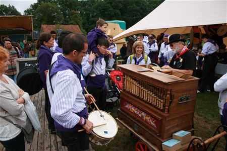 Het is een gigantisch druk weekend geweest voor de reuzengilden in Vlaanderen en vooral die van Limburg en Heusden-Zolder. Vandaag verzamelden 24 reuzen op domein Bokrijk en ook daar waren de gasten van de Catalaanse Reuzengilde Castellbisbal weer present. Ook de grootste Reus van Europa was van de partij: Jan Turpijn uit Nieuwpoort, 15 meter hoog en gedragen door 24 mensen. De reuzenstoet en de muziek - onder meer van Julien Maebe de orgeldraaier - lokten veel bezoekers. De weergoden gooiden enkele keren roet euh water in het eten, maar dat kon de pret niet bederven. Het slotstuk van een reusachtig weekend. (meer foto's van Guido Aerts)34955