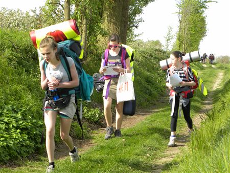 Het zit erop, de Riddertocht van de leerlingen van het Sint-Franciscuscollege met meer dan 60 stapkilometers in drie dagen. Vanochtend zijn ze vertrokken in Tielt-Winge en vermoeid maar gelukkig kwamen ze aan bij het gekende domein de Halve Maan in Diest waar de benen werden gestrekt en de voeten op schade gecontroleerd. En inmiddels is het ook duidelijk geworden waarom deze editie Riddertocht was gedoopt. Onderweg zijn de leerlingen schilderachtige kastelen met geschiedenis gepasseerd zoals Kwabeek, de kastelen van Boutersem, het kasteel van Horst (van de Rode Ridder), enz. Mooie plekjes, veel natuur, leuke landschappen en onvergetelijke herinneringen die de volgende weken nog zullen opgerakeld worden. (meer foto's van Stefan Was en Jan Dedecker)15836