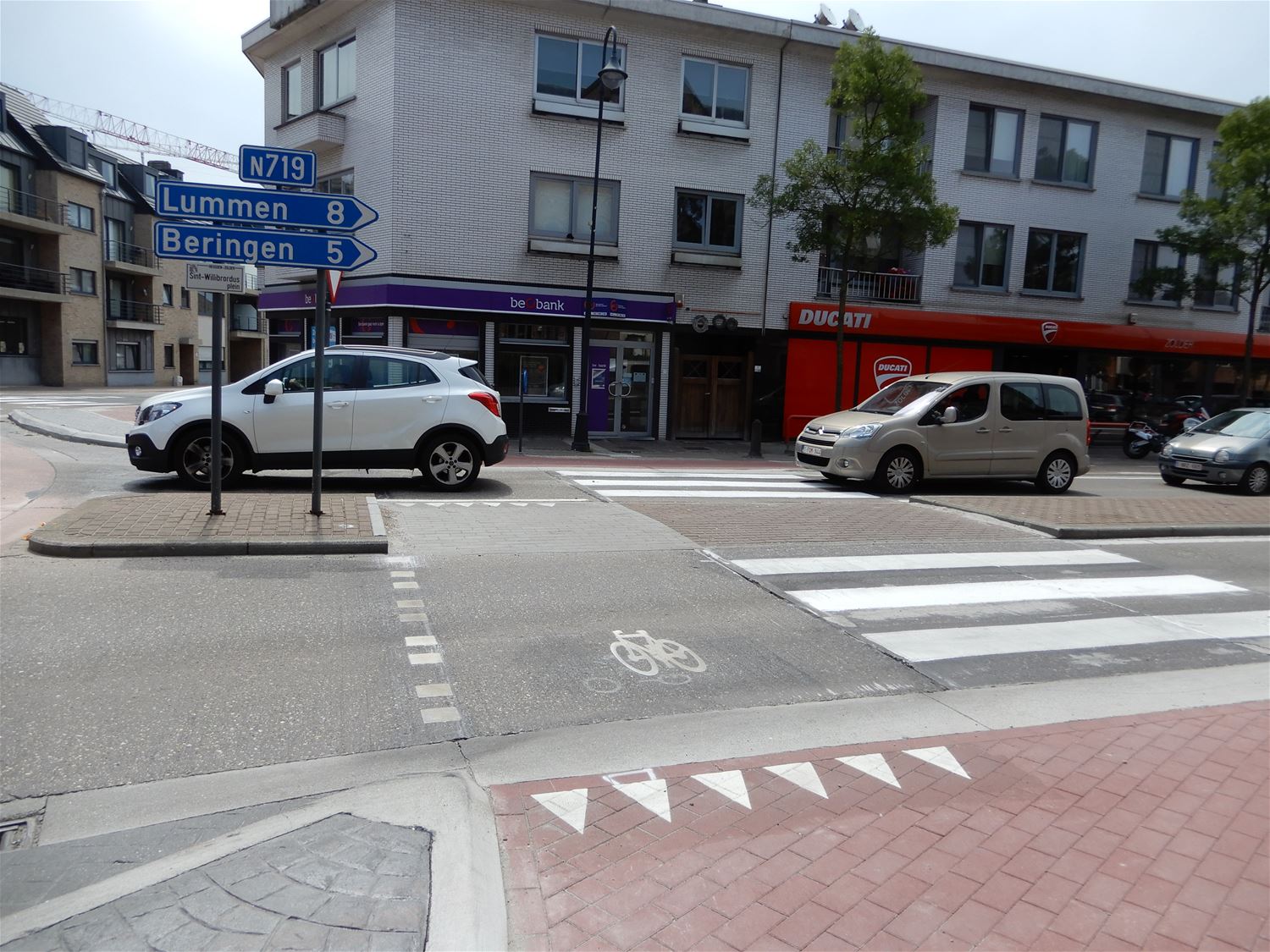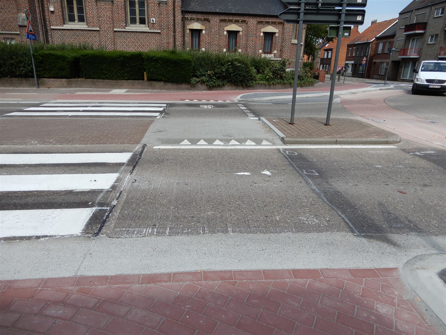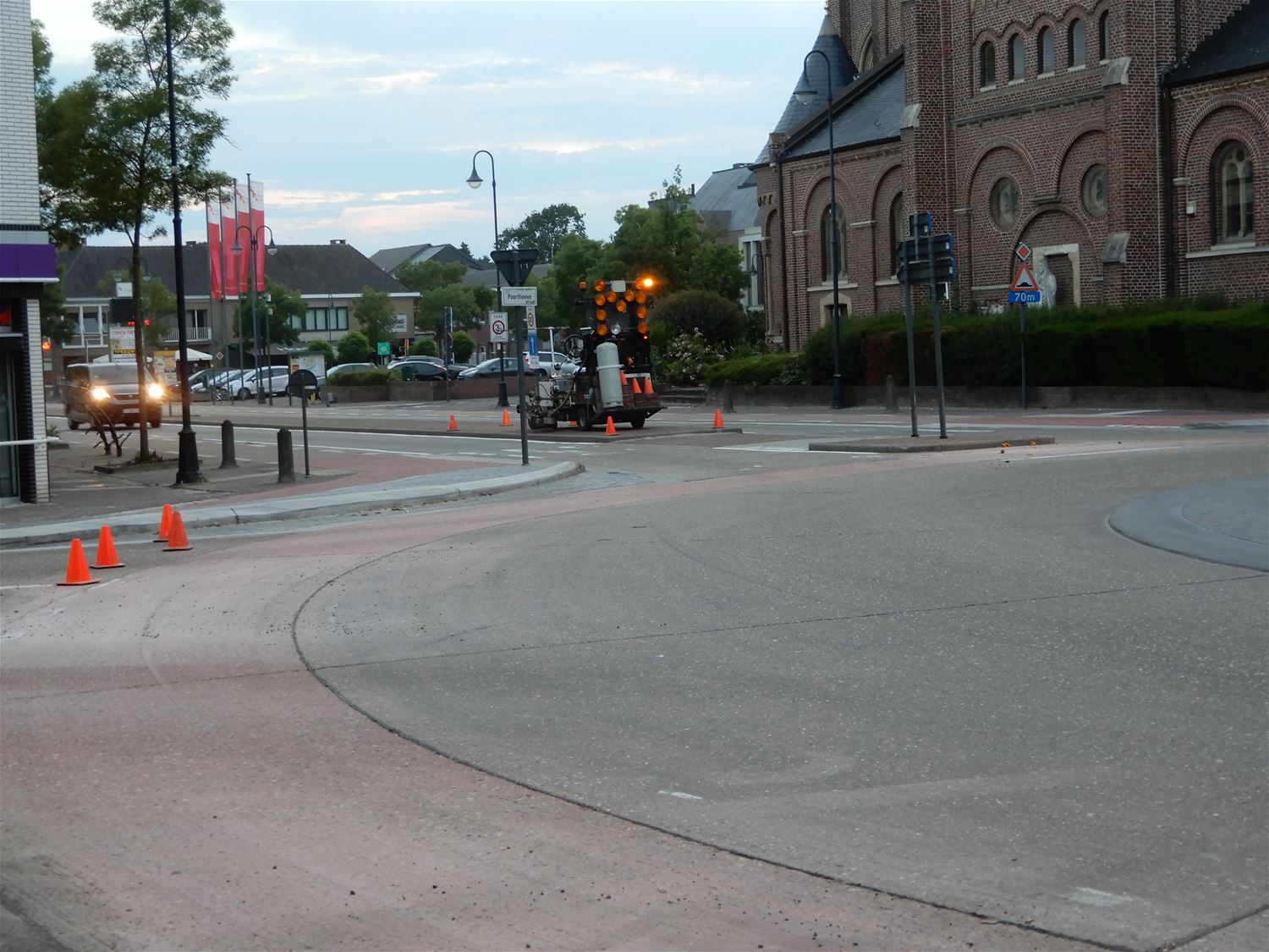 Het heeft even op zich laten wachten maar gisteravond laat heeft een aannemer dan toch alles laten aanrukken om de oversteekplaatsen voor fietsers en voetgangers bij de aangepaste rotonde in Heusden in orde te maken. Lijnen, haaientanden en blokken werden aangebracht en het is de bedoeling dat alles veel veiliger moet zijn.