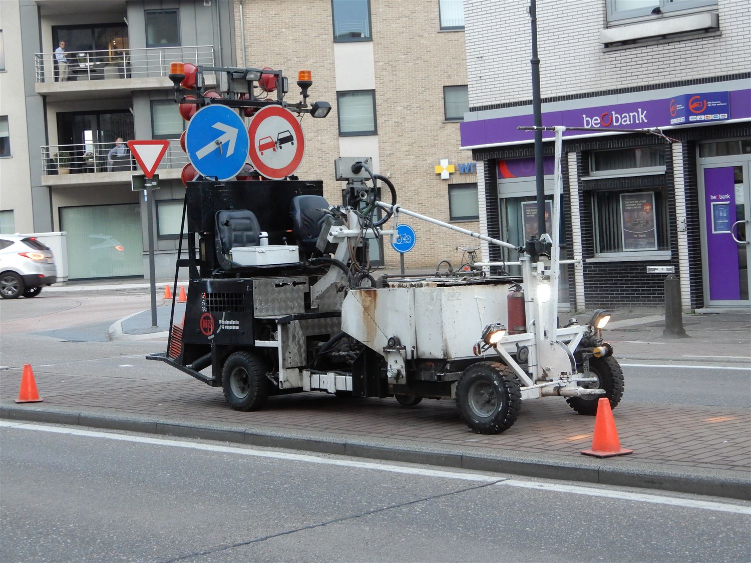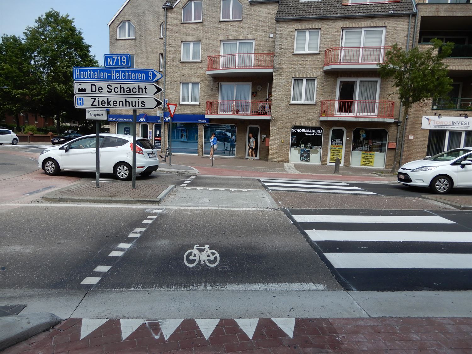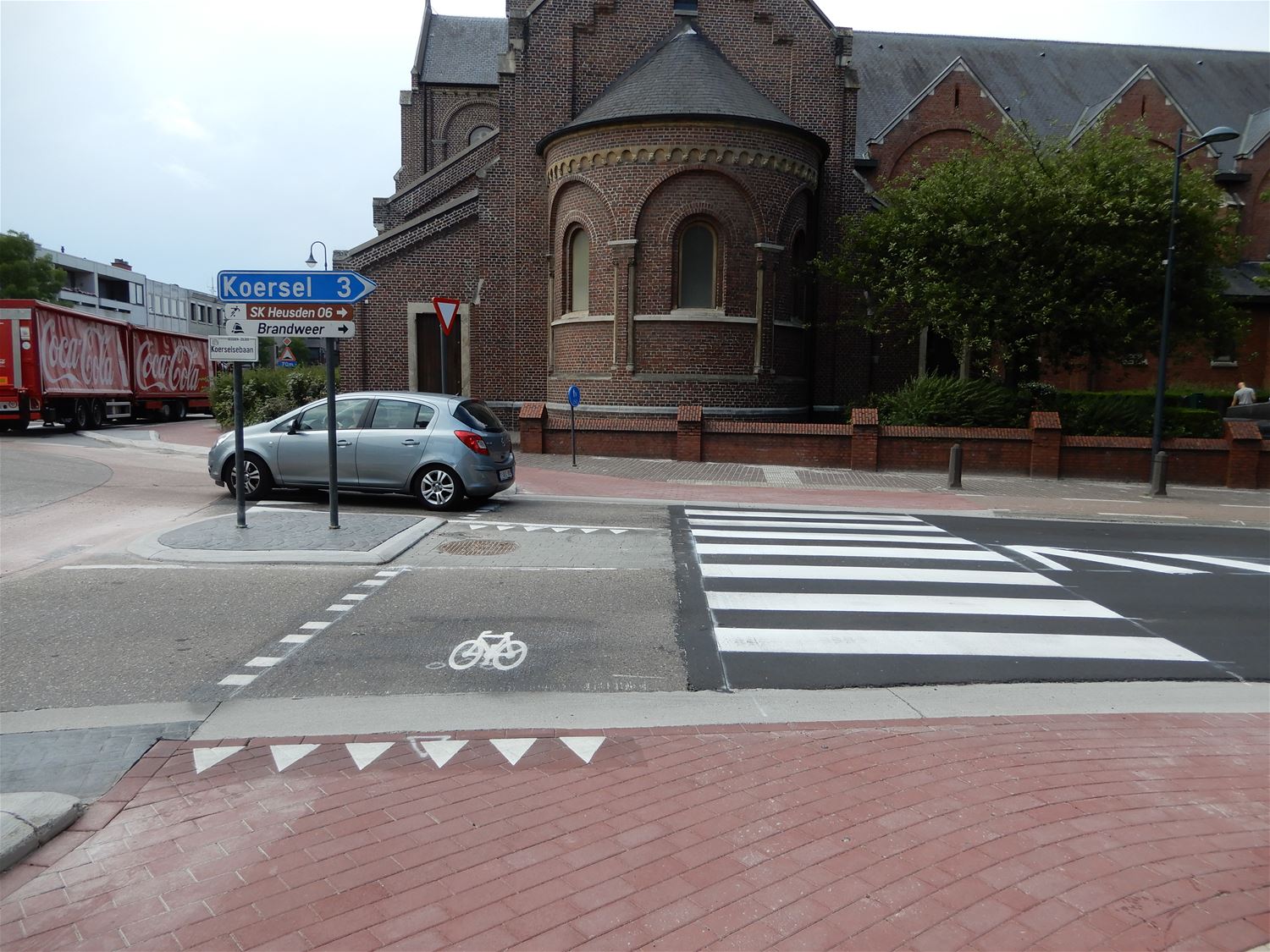 Het heeft even op zich laten wachten maar gisteravond laat heeft een aannemer dan toch alles laten aanrukken om de oversteekplaatsen voor fietsers en voetgangers bij de aangepaste rotonde in Heusden in orde te maken. Lijnen, haaientanden en blokken werden aangebracht en het is de bedoeling dat alles veel veiliger moet zijn.