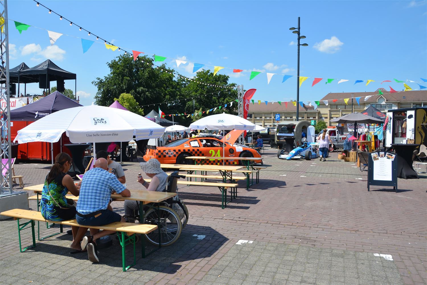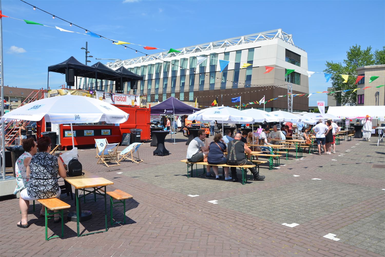 De tweede dag van het foodtruckfestival in Zolder-Centrum kwam maar traag op gang. Na de middag was het eerder rustig op het Heldenplein, maar dat was wellicht te wijten aan de warmte. Pas tegen etenstijd ’s avonds kwam het publiek naar het centrum afgezakt, moest er aan een aantal foodtrucks worden aangeschoven en raakten alle zitplaatsen bezet. Voor de liefhebbers: op 21 en 22 september strijken de foodtrucks in een andere samenstelling op domein Bovy neer. (foto’s Michiel Reynders)