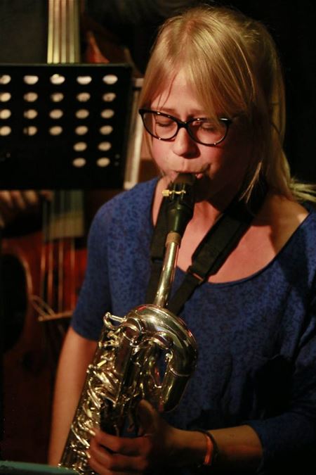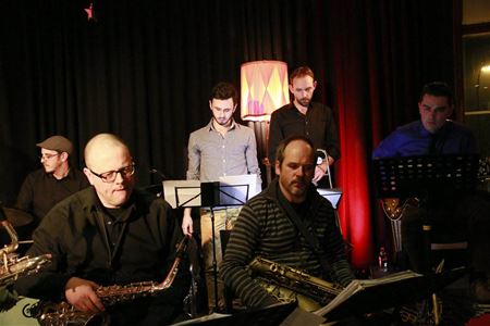 Vanavond luidde de Muze Jazz Orchestra het nieuwe jaar in. Na vijf jaar blijven Lieven Cambré, Marco Cirone en co verrassen. Ze gaven er weer een enorme lap op. Ondertussen heeft Igor Maseroli het ronkende baritonsaxwerk overgelaten aan Stien Carlier. Na de pauze kwam een goeie vriendin van Marco Cirone mee op het podium: Sabien Tiels. Voor outsiders misschien verrassend maar Sabien trekt bijzonder goed haar plan als jazzzangeres. (foto's Ria De Clerck) Meer op AfterMuzeClip18162