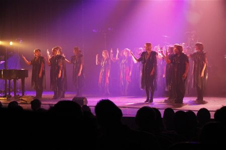 Het koor Scala - voor de gelegenheid uitgedost in Fairtrade juwelen - gaf vandaag een gesmaakt concert in Muze, een optreden in hun tour 'Black Moon'. En morgennamiddag doen ze dat nog eens over. (foto Lenscollectief)14210