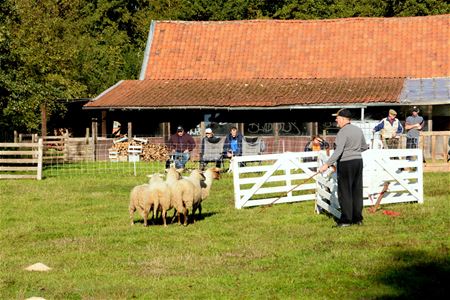 Op domein Bovy hebben vandaag en morgen wedstrijden schapendrijven plaats. Echt de moeite om eens te gaan kijken, hoe de 'handlers' of herders hun honden met korte instructies en fluitsignalen laten weten wat ze met de schapen moeten doen en waar ze naartoe moeten. Dat gebeurt telkens met 4 schapen. Ook morgenvoormiddag kun je er nog gaan kijken. (meer foto's van Michiel Reynders)43331