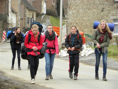 De driedaagse Schelpentocht van het Sint-Franciscuscollege zit erop en de leerlingen hebben vandaag een mooie laatste dag beleefd. Niet alleen bleef de regen achterwege, maar tussen Rijkhoven en Rutten bij Tongeren - het eindpunt - stapten ze ook door het mooie Haspengouwse landschap. Moe maar voldaan werden de spullen terug in de bussen geladen, met heel wat herinneringen, ze zullen nooit nog vergeten waarvoor de Sint-Jacobsschelp en het Compostelagenootschap staan, daar mochten ze trouwens een souvenir van ontvangen. En ze weten nu ook dat voor een echte tocht naar Compostela meer dan 3 dagen nodig zijn ... (meer foto's van Jan Dedecker)12904