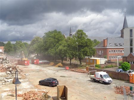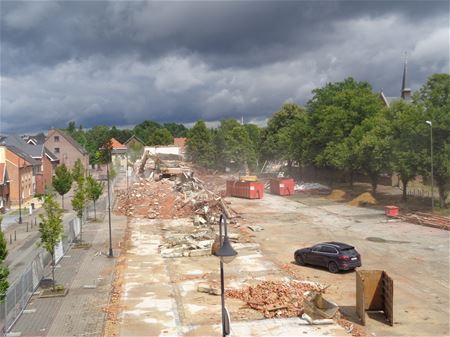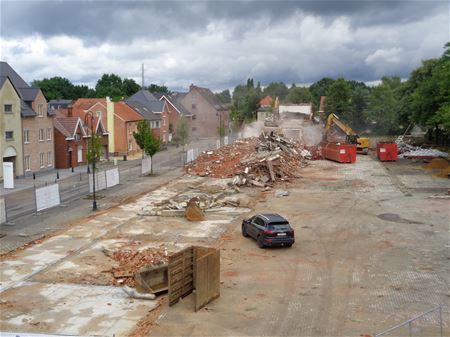 Het is nu heel snel gegaan met de afbraak en de oude jongensschool is zo goed als uit het straatbeeld van de Kapelstraat verdwenen. De vrachtwagens hebben ook erg veel puin afgevoerd. Keerzijde van de medaille is wel het stof dat het centrum inwaaide. (foto's Julien Maebe)34855