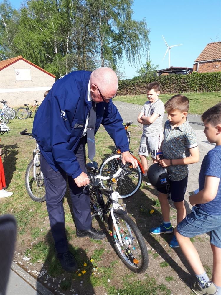 De Sint-Jan Berchmansschool in Viversel start volgende week met een nieuw initiatief: een fietspool. In de aanloop daarvan kwamen woensdag alvast veel leerlingen met de fiets naar school, want wijkagent Danny Poelmans kwam langs voor een fietscontrole. Vanaf volgende week worden de leerlingen op dinsdag, donderdag en vrijdag per fiets thuis opgehaald door twee begeleiders. Daarvoor zorgen, leerkrachten, directie, ouders en leden van de schoolraad. Het project loopt alvast tot het einde van het schooljaar. (foto’s Steven Goris)46577
