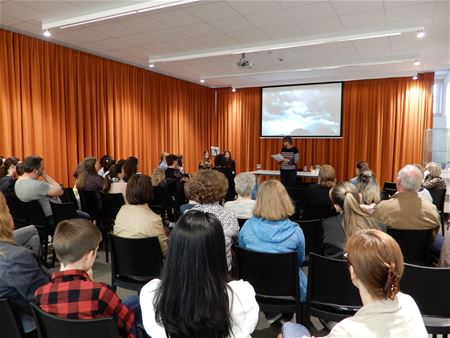 Lezen en het stimuleren van lezen, is al sinds jaar en dag een streefdoel van het Sint-Franciscuscollege. Het project 'SFC leest mee' is de motor in dat verhaal. Daarin worden de leerlingen aangepord om boeken te lezen, erover te schrijven en te praten en de boeken te beoordelen. Vanavond had in de bib het traditionele slotmoment plaats. Auteur Karen Curé gaf een lezing, zij behoort tot de geliefde auteurs van de jongeren. De leerlingen zorgden voor de muzikale inkleding van het feest. (foto's Julien Maebe)39896