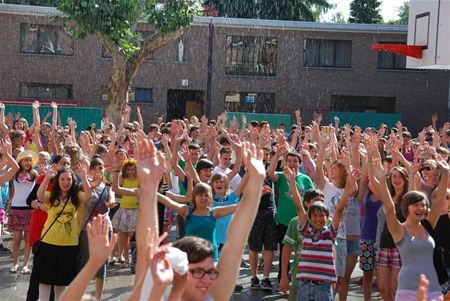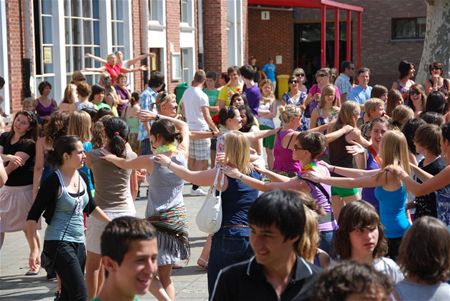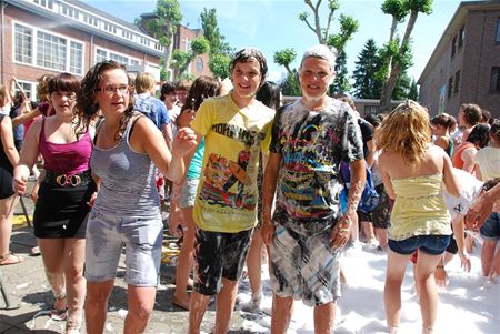 Ook in het Sint-Franciscuscollege zit het schooljaar erop en naar goede gewoonte hebben ze dat op een festivalachtige manier gedaan. Op de speelplaats van campus Berkenbos verzamelden alle leerlingen in zomerse kleding. Daar werden onder meer de sportkampioenen van het afgelopen schooljaar gehuldigd. Maar er was ook een showprogramma uitgewerkt met een heleboel optredens, ook van eigen leerlingen, een band, een drummer, een pianist, zang, dans, optreden van Tom Waes - was dit nu de echte?? - omringd door dansende hombres en conchita's - maar herkenden we daar geen leerkrachten? Het was ook even de adem inhouden toen een trialkampioen met de fiets over auto's kwam rijden en zelfs .... over de directie sprong. Tot jolijt van de dames toonde nog een wereldkampioen bodybuilding zijn torso en joeg een vuurspuwer de temperatuur nog meer de hoogte in. Met de zon en de zwoele temperaturen kreeg alles een beachparty-karakter en dat werd het helemaal toen niemand minder dan Zohra achter de dj-set plaatsnam en alles mocht uitlopen in een schuimparty. Heel even leken ze het jammer te vinden dat toen de vakantie begon ... Alle foto's