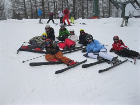 Het gaat snel en zo is ook alweer de voorlaatste dag gepasseerd van de SFC-skireis. Vandaag was het minder goed weer, met regendruppels in het dal en sneeuw op de pistes. De zichtbaarheid was ook minder. Maar dat heeft de leerlingen niet belet om heel wat sneeuwkilometers af te leggen. Met de slalomwedstrijd van morgen in het achterhoofd, was het vandaag dan ook het unieke moment voor de laatste trainingen en tactische afspraken, met alle stress vandien. De traditionele afscheidsparty zet op dit ogenblik het hele hotel op stelten. Gelukkig zijn er geen andere gasten. Maar de danspassen zijn volgens insiders een ideale afwisseling om de stramme beenspieren te ontspannen. (foto's Kurt Vanvelk)