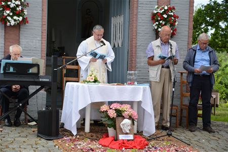 Op de zaterdagavond van Sint-Janskermis wordt altijd een eucharistie opgedragen buiten aan de Sint-Janskapel die massaal wordt bijgewoond door de buurtbewoners. Ook vanavond mocht pastoor Guido De Waegeneere veel aanwezigen verwelkomen. De pastoor schetste de figuur van Sint-Jan en kreeg bij de voorbeden en het voorlezen van de intenties de hulp van buurtbewoners Jef Balette en Eddy Webers. Het was een sfeervolle viering in het bos, en de samenhang van de buurt werd nog verder versterkt tijdens een gezellig samenzijn achteraf. (meer foto's)27796