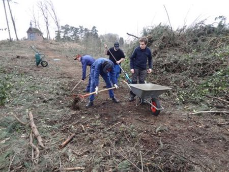 Er is al heel wat te doen geweest over het kappen van het Sint-Jansbos aan de Kapelstraat in Heusden. Dat wordt beheerd door Limburgs Landschap en niet zo lang geleden zijn de 'exoten' zoals de Corsicaanse dennen, de Amerikaanse vogelkers en de Robinia gekapt. Dat was een ware kaalslag die de buurtbewoners deed opschrikken en de nodige onrust veroorzaakte. Maar keerzijde van de medaille is dat de streekeigen soorten zoals de zomereiken en berken nu voldoende licht en lucht krijgen om te groeien, zodat ook de insecten, vlinders, vogels en kleine bosdieren zich beter thuis voelen. Vandaag nog waren de leerlingen van VIBO Sint-Barbara druk bezig met het opruimen van het afvalhout, er zijn al zowat 200 boomputten voorgeboord. Kers op de taart wordt de boomplantactie van zaterdag 23 maart. De buurtbewoners worden dan vanaf 9 uur verwacht om met zijn allen 2000 nieuwe bomen en struiken te planten onder begeleiding van Limburgs Landschap. LiLa op een infostand ook alle info verschaffen. (foto's Julien Maebe)12639