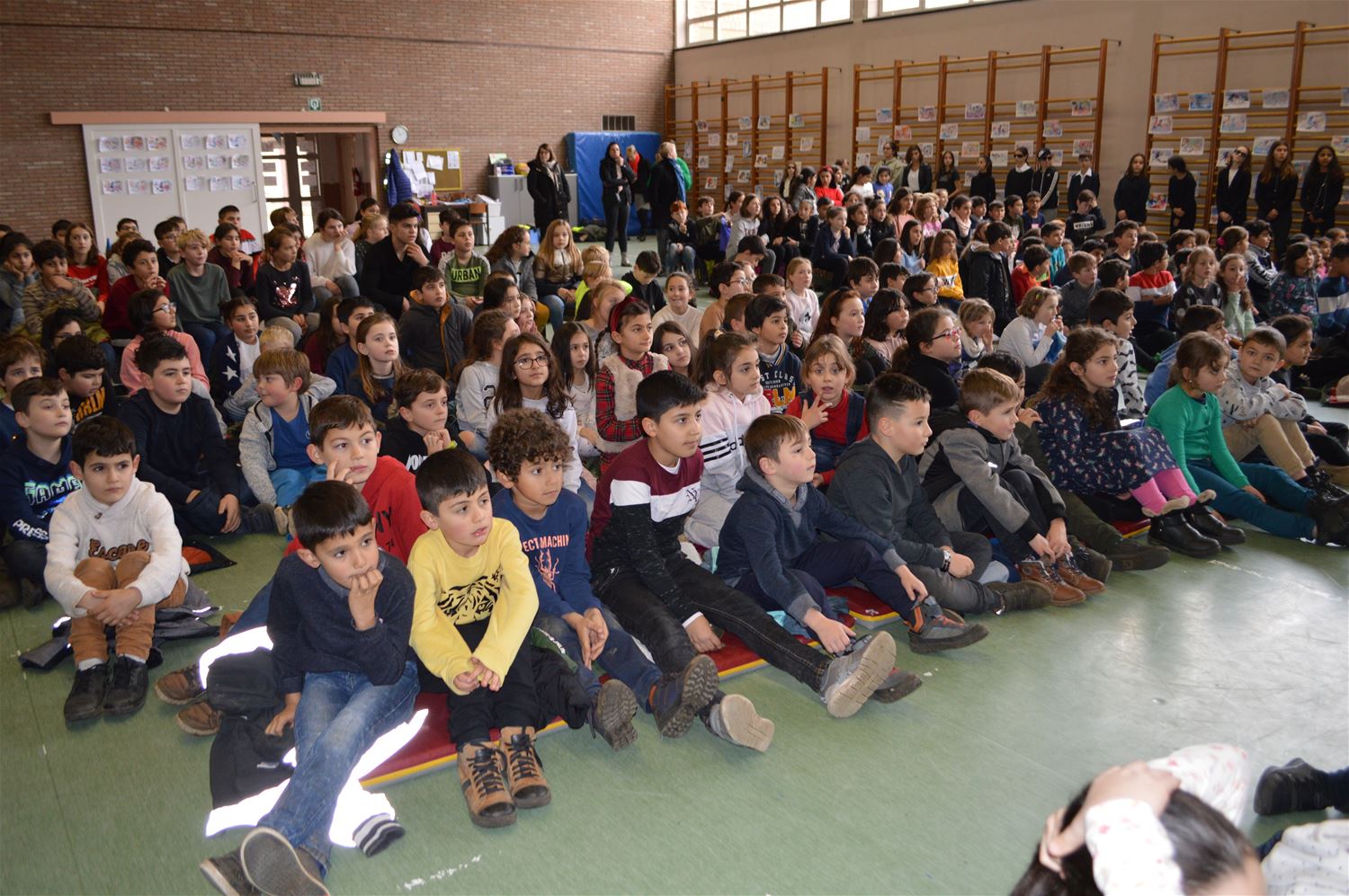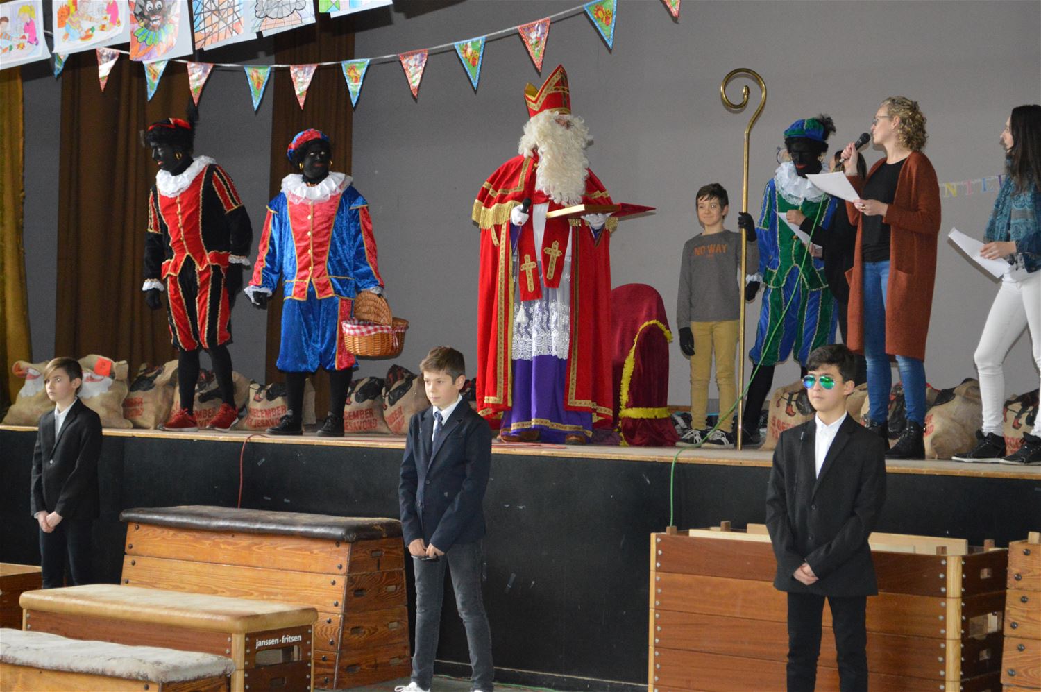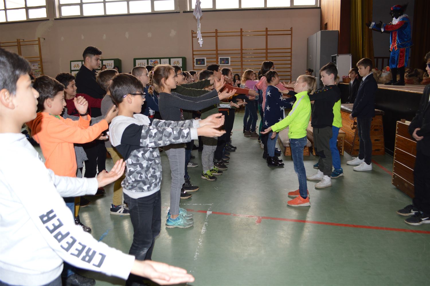 De leerlingen van VLS De Brug mochten vandaag de Sint en zijn zwarte pieten in hun school verwelkomen. De Sint kwam met de lijnbus maar had wat vertraging, Dat kon het enthousiasme niet temperen. De leerlingen toonden hun talent aan het hoge bezoek tijdens een 'show'. Die van het 6de leerjaar ontpopten zich zelfs tot perfecte bodyguards. (foto's Inge Vreys)