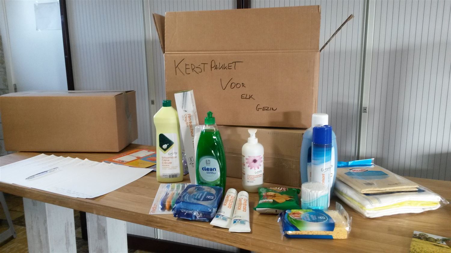 Bij Sint-Vincentius had de maandelijkse voedselbedeling plaats. Alle gezinnen kregen een mooi kerstpakket mee van de Rotaryclub Midden-Limburg: een pakket vol met poetsmateriaal. De mensen waren erg tevreden, zoals één van hen die trots poseert met zijn zwaar beladen fiets. Het centrum in de St.-Lutgardisstraat is gesloten van maandag 23 decmeber tot vrijdag 3 januari. Vanaf zaterdag 4 januari is het luikje weer geopend voor alle bruikbare spullen.