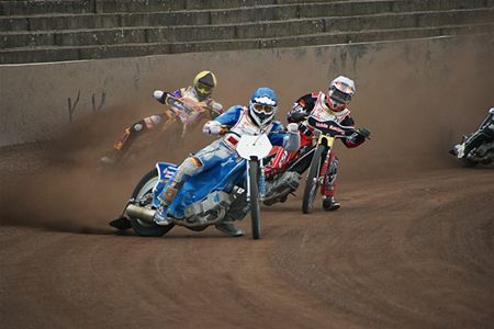 Als we de gezichten van de fotografen bekijken, dan is er tijdens de speedway vandaag op Helzold weer heel wat stof 'gevreten'. Maar dat kwam ook doordat de meeste rijders tot het uiterste gingen in hun strijd om de 'Gouden Helm', veel spektakel dus en dat leverde niet alleen sensationele races op, maar ook enkele valpartijen. Dat was onder meer jammer voor de jonge Nederlandse Kelly Velda die erg goed bezig was en haar mannelijke collega's vaak het nakijken gaf. Maar ze kwam ten val en brak onder meer haar pols. Voor het overige mag de Speedwayfanclub op een geslaagde editie terugblikken. (meer foto's van Stephan Volders) . 13840