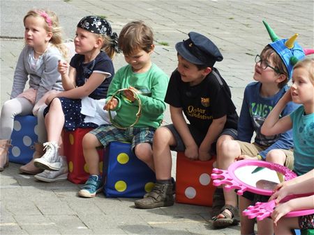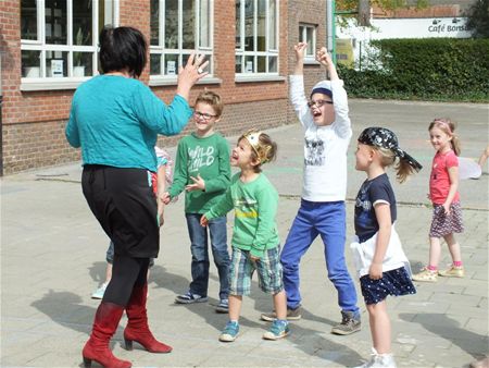 In het kader van Woensdag Bibdag en de Buitenspeeldag konden de kinderen vanmiddag op de speelplaats voor de bib genieten van een activiteit met TiTaTejater. Zij deden leuke spelletjes met de kinderen, maar er waren ook verkleedpartijen met prachtige hoeden, elfenvleugels of toverstafjes. Improviseren wordt aan de kinderen al op jonge leeftijd geleerd.15716