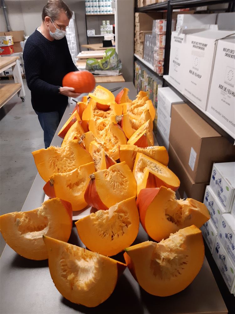Vandaag en morgen zijn er weer openwinkeldagen bij Sint-Vincentius. De gezinnen of alleenstaanden die tot de doelgroep behoren, mogen dan weer hun keuze komen maken uit het aanbod. Enkele sponsors hebben dat aanbod flink aangedikt: traiteur Raf Loos met verse soep, wafels van bakkerij Vanuytrecht uit Herk-de-Stad, pompoenen van een gulle schenker uit Boekt en een doos onderhoudsproducten voor iedereen van Rotary Houthalen Midden-Limburg. (foto's Stefan Was)66975