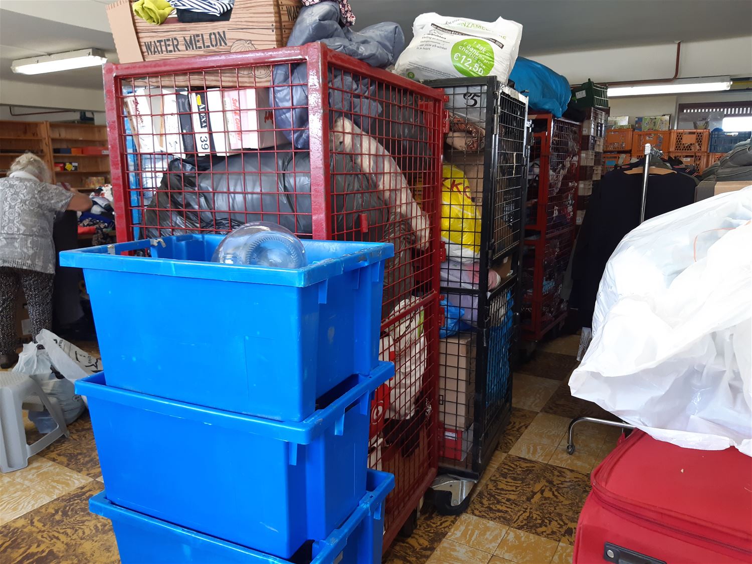 Na een lange sluiting door de coronamaatregelen opende Sint-Vincentius vorige dinsdag zijn deuren. Het was duidelijk dat de mensen de afgelopen tijd hebben benut om op te ruimen want ze brachten tonnen materiaal binnen: kleding, speelgoed, schoenen ... De kelderruimte zit stampvol. De vrijwilligers hebben nu even de tijd nodig om alles te sorteren en sluiten daarom noodgedwongen enkele dagen. Nu maandag en dinsdag blijven de deuren gesloten. Tegen woensdag hopen ze weer ruimte vrij te hebben en worden alle giften met open armen ontvangen. Inmiddels staan de bananendozen klaar voor de voedselbedeling van 18 juni. En ook het nieuwe magazijn krijgt vorm, er moet onder meer een garagepoort geleverd worden, ook de inrit moet nog aangelegd. (foto's Stefan Was)55100