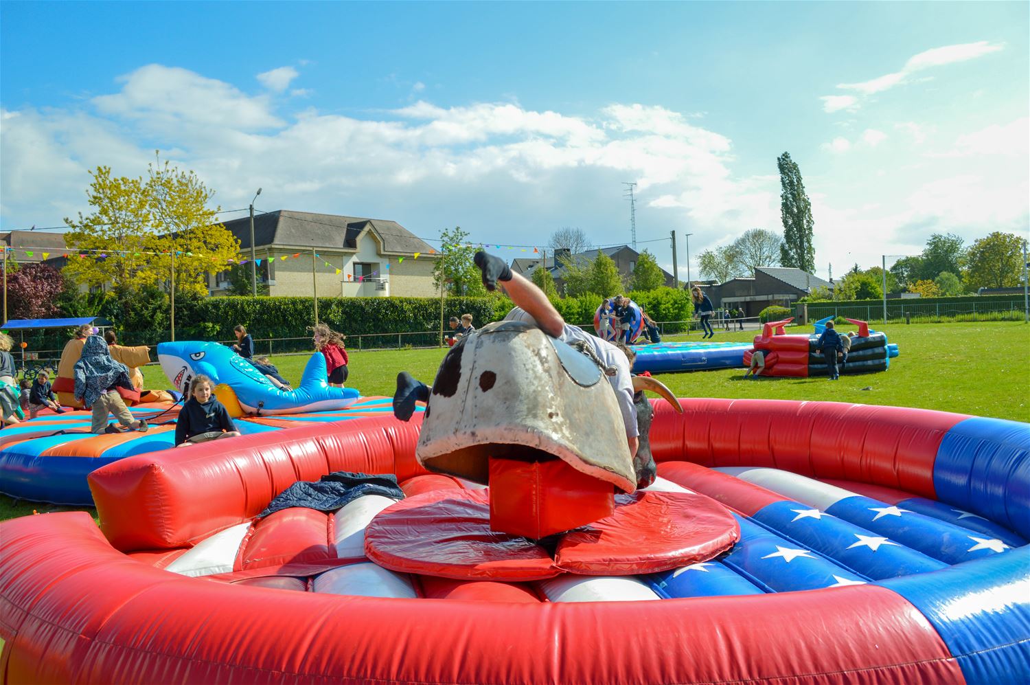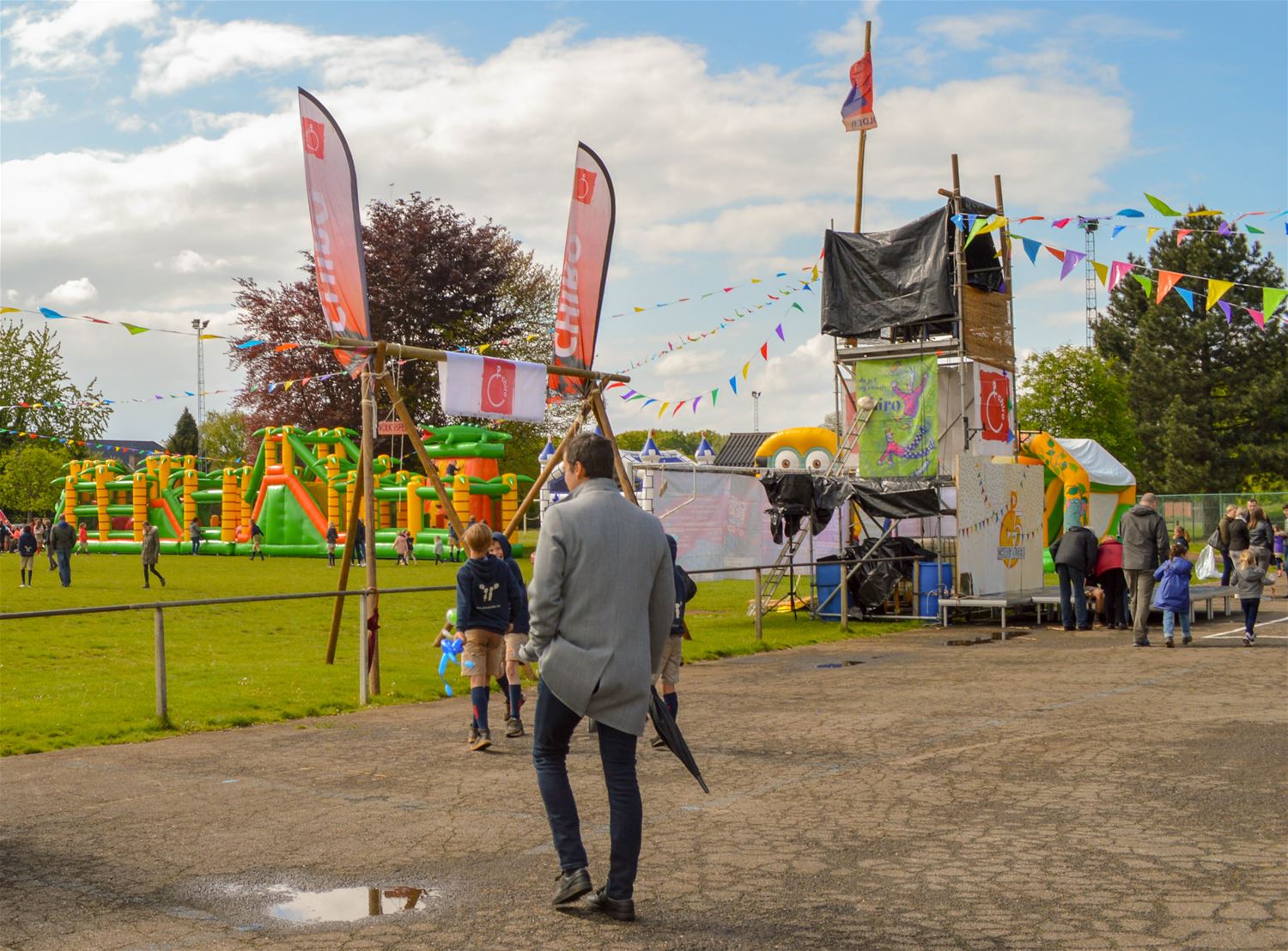 Na de meer officiële viering van 75 jaar Chiro Zolder gisteren, was het vandaag volop feest voor jong en oud, met centraal de kinderen en hun ouders. De terreinen aan de Jogem waren herschapen in één groot speelterrein met springkastelen, volksspelen, schmink, lasergeweren, rodeo, gekke fietsen. En daar geen foodtrucks maar wel tenten met uitgesproken chirokost. Kortom, ’t was een plezante boel. (foto’s David Amgad)46693
