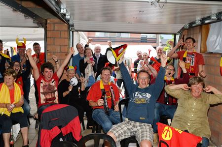 Exelgaarden hield zijn 7de straatfeest en omdat dit samenviel met de wedstrijd Wales-België lag het thema voor de hand: de meeste buurtbewoners verschenen dan ook in aangepaste outfit op het appèl. Een goochelaar zorgde voor de opwarming en na de Belgische frietjes ging iedereen supporteren voor een groot scherm. Helaas voor supporters en Duivels was de goochelaar wat vroeg weggegaan, en het grote drankverbruik was dan ook niet te wijten aan het vieren van de overwinning maar het doorspoelen van de ontgoocheling. (foto's Lowie Gielis) 27888
