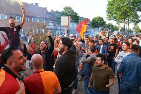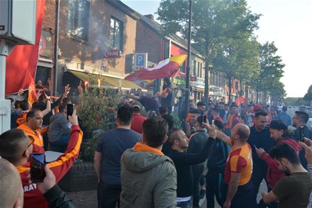 In de superliga van het Turkse voetbal won Galatasaray vanavond op de laatste speeldag met 0-1 van Goztepe en kroont zich daarmee tot landskampioen Zoals bekend telt Galatasaray in Heusden-Zolder de meeste supporters en zo kwam na het laatste fluitsignaal iedereen uit de cafés en huizen aan de Koolmijnlaan naar buiten. Daar kwam het tot dolle taferelen met zang, dans en Bengaals vuur. De politie had vooraf gewaarschuwd dat de weg moest vrij blijven, en iedereen bleef ook aan de kant.