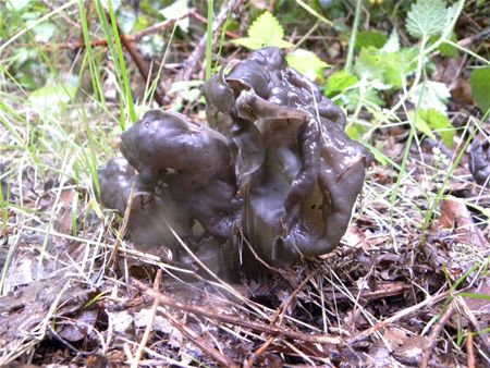 De zwarte kluifzwam (helvella lacunosa) heeft een vruchtlichaam van 4 tot 7 cm breed en 3 tot 10 cm hoog. De hoed is lichtgrijs tot zwart, gelobd en zadelvormig met 2 of 3 toppen. De steel is grijzig tot bruinig met lengteribben. Je vindt de zwam van de zomer tot de herfst in loofbossen en gemengde bossen, ook onder bomen en struiken in parken, wegbermen en tuinen. Het oppervlak van de bizar gevormde kluifzwammen wordt door de sporenvormende laag bedekt. De zwam valt niet echt op, doordat hij van bovenaf lijkt op een gekreukt herfstblaadje. Dit exemplaar vond Stefan Was in de bossen Vansoest in Eversel.8496