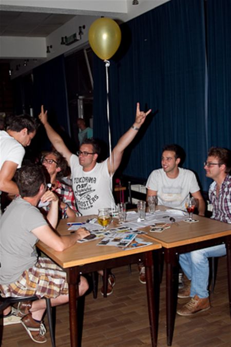 Een drukke avond gisteren tijdens 'Eversel Kwis(pel)t'. Liefst 19 tafels met elk maximaal 6 deelnemers en ook de zaal zat vol en er was heel wat ambiance. De kwis verliep spannend, in drie delen. De Stammers stonden lange tijd aan de leiding tot 't Lustig Ververke in extremis de overwinning wegkaapte met één punt verschil. De kinderen amuseerden zich intussen onder leiding van Moed en Volharding in de sporthal. (foto's Gust Ischen)
