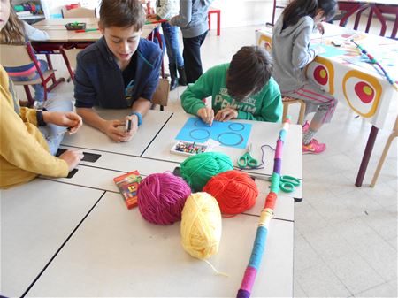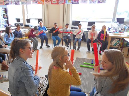 In 't Molenholleke stond de boel werkelijk op stelten vandaag. In elke plaats en hoek van de lagere school viel muziek te horen, was dans en theater te zien. En ook artiesten met kunst in de vingers kwamen aan hun trekken. Alles maakte deel uit van de themadag 'Kronkels en bubbels'. (foto's Rita Grosemans)25127