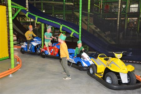 Tarzan & Jane in de Michel Scheperslaan is helemaal klaar. Vanmiddag was er de voorstelling voor de pers en vanaf zaterdag is de grootste binnenpeeltuin van de Benelux voor iedereen open. De kinderen van het wijkschooltje mochten als eersten alles komen proberen. In minder dan een half jaar hebben Filip Struyf en Caroline Carpentier heel het complex klaar gekregen, en het resultaat is prachtig. Binnen gaat het om 4.000 m². Daarvan is 400 m² voorzien voor de allerkleinsten, een peuterzone met aangepaste spelen, ballenbad, enz. De rest van het complex is dan weer voor de iets grotere kinderen met allerlei spelen, zoals een roetsjbaan, botsauto's met joystick, een springkasteel waarin je in de bek van een reusachtig dier kunt verdwijnen, enz. Heel bijzonder is ook de blacklight mini-golf die de speler door verschillende werelden leidt, van onder water tot in de jungle. De betalende bezoekers (2-12 jaar) kunnen de mini-golf gratis gebruiken als ze begeleid zijn door hun ouders. Tieners kunnen zich boven uitleven in een game-room. Betalende kinderen krijgen daarvoor bij de ingang een jeton. Ouders kunnen op verschillende plaatsen terecht. In de binnenspeeltuin zelf is veel plaats om te genieten van dranken en snacks uit de selfservice. Maar er is ook de aparte brasserie Statie - met 160 zitplaatsen - rechtstreeks toegankelijk van buiten en met een uitgebreide drank- en eetkaart. En ook buiten ligt nog een gigantisch terras in de zon. Alles samen zijn er 1300 zitplaatsen. De buitenspeeltuin van 11.000 m² is gratis toegankelijk, en voorzien van heel wat veilige speeltuigen, een adventure mini-golf en een voetbalgolf. Opvallend is trouwens de prachtige buitenaanleg van het hele terrein. Tarzan & Jane mikt met zijn aanbod niet alleen op de gezinnen, maar ook op verjaardagsfeestjes, klas- en verenigingsuitstappen, bedrijfsfeesten, en er zijn zelfs pakketten voor teambuildings. Ook zullen regelmatig thema-activiteiten plaatsvinden. Het complex heeft 5 miljoen euro gekost, er zijn 15 mensen voltijds aan de slag, aangevuld met een groep flexibele medewerkers. De speeltuin is open iedere woensdagnamiddag, op vrijdagavond, zaterdag en zondag van 10 tot 20 uur, tijdens de schoolvakanties elke dag en ook op feestdagen. Kinderen van 2 tot 12 jaar betalen 11 euro voor de binnenspeeltuin. Alle anderen mogen er gratis in, maar betalen wel als ze bijvoorbeeld de mini-golf of voetbalgolf willen gebruiken. Er is heel wat parking op het terrein, maar als die vol staat, worden de bezoekers doorverwezen naar een parking in de buurt waar een shuttlebus vertrekt.(meer foto's van Marina Poelmans)
