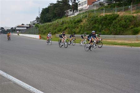 Zolder zijn deze namiddag vlot gestart en de renners gingen er al meteen flink tegenaan. Het weer was prima en daardoor zijn er ook heel wat supporters opgedaagd. Die spaarden hun aanmoedigingen niet voor de 172 ploegen en individuen. In de loop van deze 24 uren zullen meer dan 900 renners in actie komen. Elk team heeft daarvoor zijn eigen organisatie uitgewerkt, per uur, of per twee uren, ... Het onderscheid tussen de snelle teams of renners en de minder snelle, werd al gauw duidelijk. Na bijna 4 uur wedstrijd reed met Keukens Jongen Cycling Team 1 geen onbekende op kop met 41 rondes. Maar in het kielzog van de leider volgden nog een 15-tal andere renners. Nog zeker 25 teams reden samen in dezelfde ronde. (seffens meer)