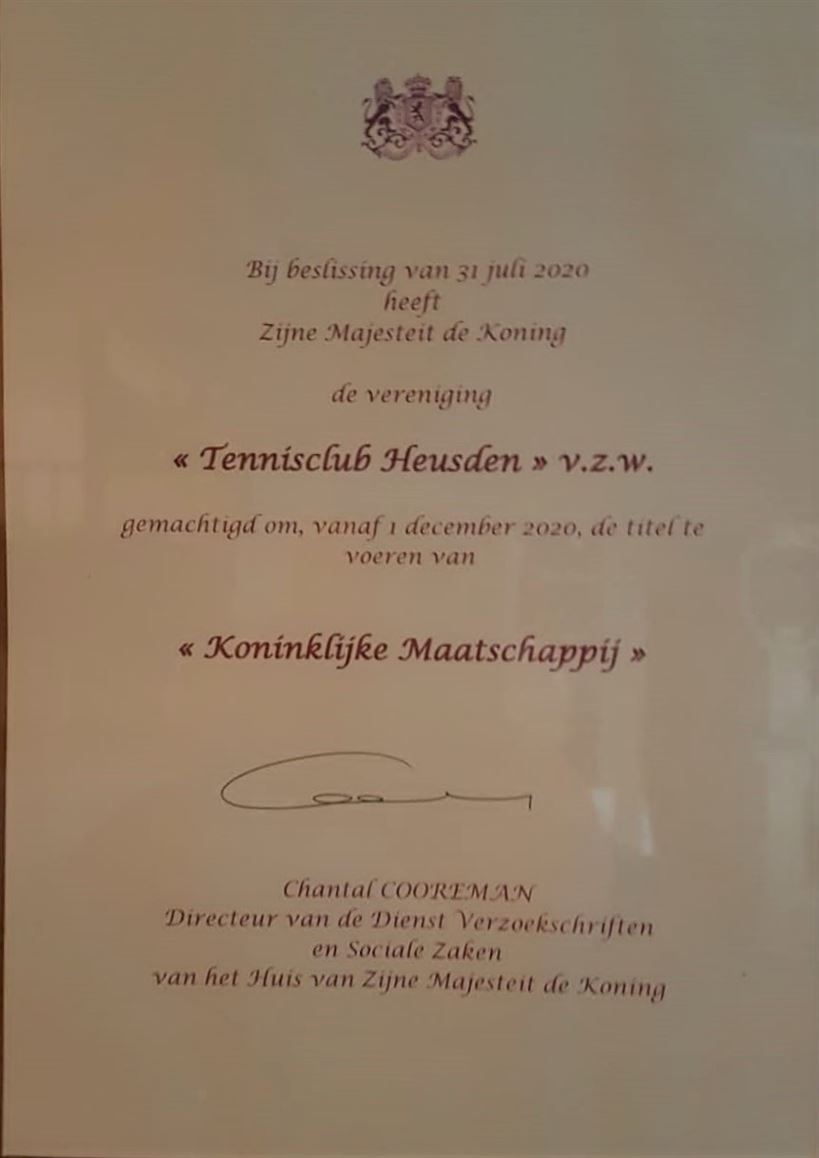 Vandaag bestaat de tennisclub in Heusden precies 50 jaar. Vanuit het Koninklijk Paleis ontving ze het bericht dat ze zich vanaf nu 'koninklijke' mag noemen. Door de uitbreiding van de activiteiten van tennis naar padel werd de naam eerder al gewijzigd van TCH naar TCPH maar vanaf nu is het Koninklijke TennisClub en Padel Heusden (KTCHP). Een feestje zit er momenteel niet in maar aan de zowat 1.000 leden is gevraagd om thuis een glaasje te drinken en dat te delen met de anderen. 66773