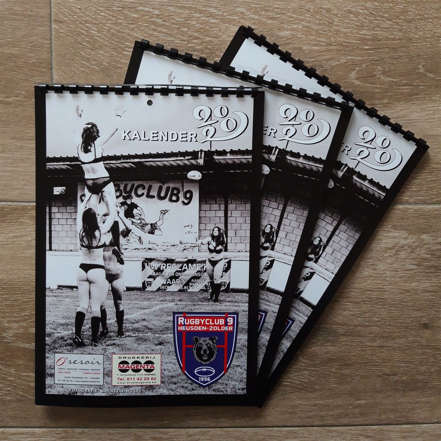 De dames van rugbyclub RC 9 Heusden-Zolder hebben een lingeriekalender uitgebracht. Ze speelden al jaren met het idee, maar wat toevallige contacten maakten het dit jaar uiteindelijk mogelijk. Ze vonden een partner in een Heusdense lingeriezaak. Daar gingen ze vooraf langs waar hen enkele setjes werden voorgesteld om te dragen bij de photoshoot. Een fotosessie met schaarse kleding stel je je altijd voor in één of andere tropische omgeving. Helaas, de dag van de photoshoot was het guur weer: zeer koud, er stond een strakke wind en één keer moesten modellen en fotografe Machteld Houben zelfs op de loop voor een regenbui.