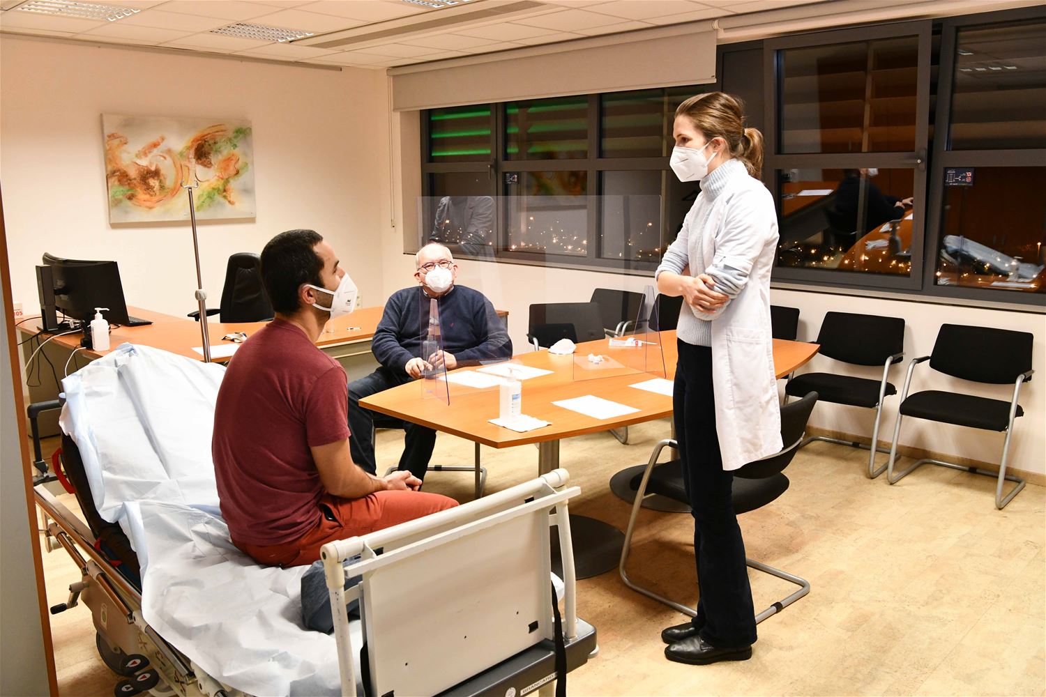 Het is een uniek initiatief in het SFZ om hen die oefenkans te geven. Maar ook geen toeval. Door de coronaperikelen werden de studenten in hun stages in moeilijke omstandigheden ondergedompeld. Maar ook kon het ziekenhuis rekenen op hun enthousiaste inzet. Anderzijds zorgde de pandemie dat buitenlandse stages en bijscholingsavonden niet konden doorgaan. Daarom staken stagebegeleiders en dokters de koppen bij elkaar om hen dit aan te bieden. De 80 beschikbare plaatsen waren - net als voor een festival - meteen volgeboekt met nog eens 30 op de wachtlijst. Meer dan 30 geneesheer-specilasten hebben zich aangeboden om de oefening te begeleiden, ook de coördinerende professor van Leuven neemt deel. Het spreekt vanzelf dat heel de oefening coronaproef verloopt. (foto's Hans Put)
