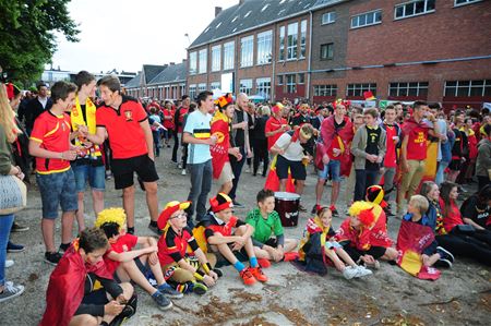 Het begon allemaal veelbelovend in de EK-Arena: meer dan 1000 supporters die opgewarmd door de dj, enthousiast supporterden voor een ploeg die deze kwartfinale niet kon verliezen. De aanvalsgolven en de vroege goal van Nainggolan leken het startsein voor een lange dolle avond. Maar toen vielen de Duivels stil, en waren de Welshmen niet meer te stuiten. Het was het begin van wat later het einde zou blijken, de eerste stortbui bekoelde het enthousiasme dat later in een tranendal zou omslaan. Het eindsignaal liet de EK-Arena, net als de rest van het land en Rijsel achter vol ongeloof. De moedige poging van de bestelwagen-discobar om toch nog iets als een after-party op gang te brengen, kon amper nog een 100-tal mensen beroeren. En een laatste regenbui spoelde de rode kleur weg van de straten. Vlaggen en wimpels zullen de komende dagen ook stilaan verdwijnen, hopelijk mogen we ze over twee jaar weer bovenhalen, ondertussen zullen we met onze Italiaanse dorpsgenoten mee supporteren. Eén ding is duidelijk, voetbal kan in onze contreien nog mobiliseren, emotioneren, verbinden, maar ach, tegelijk blijft het een spelletje. (meer foto's van Julien Maebe) 27872