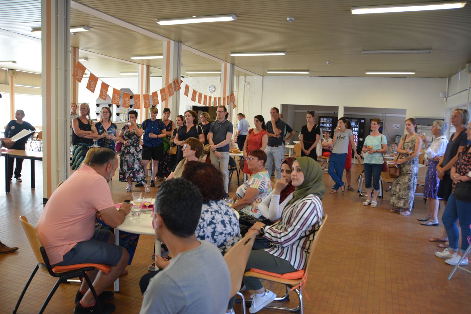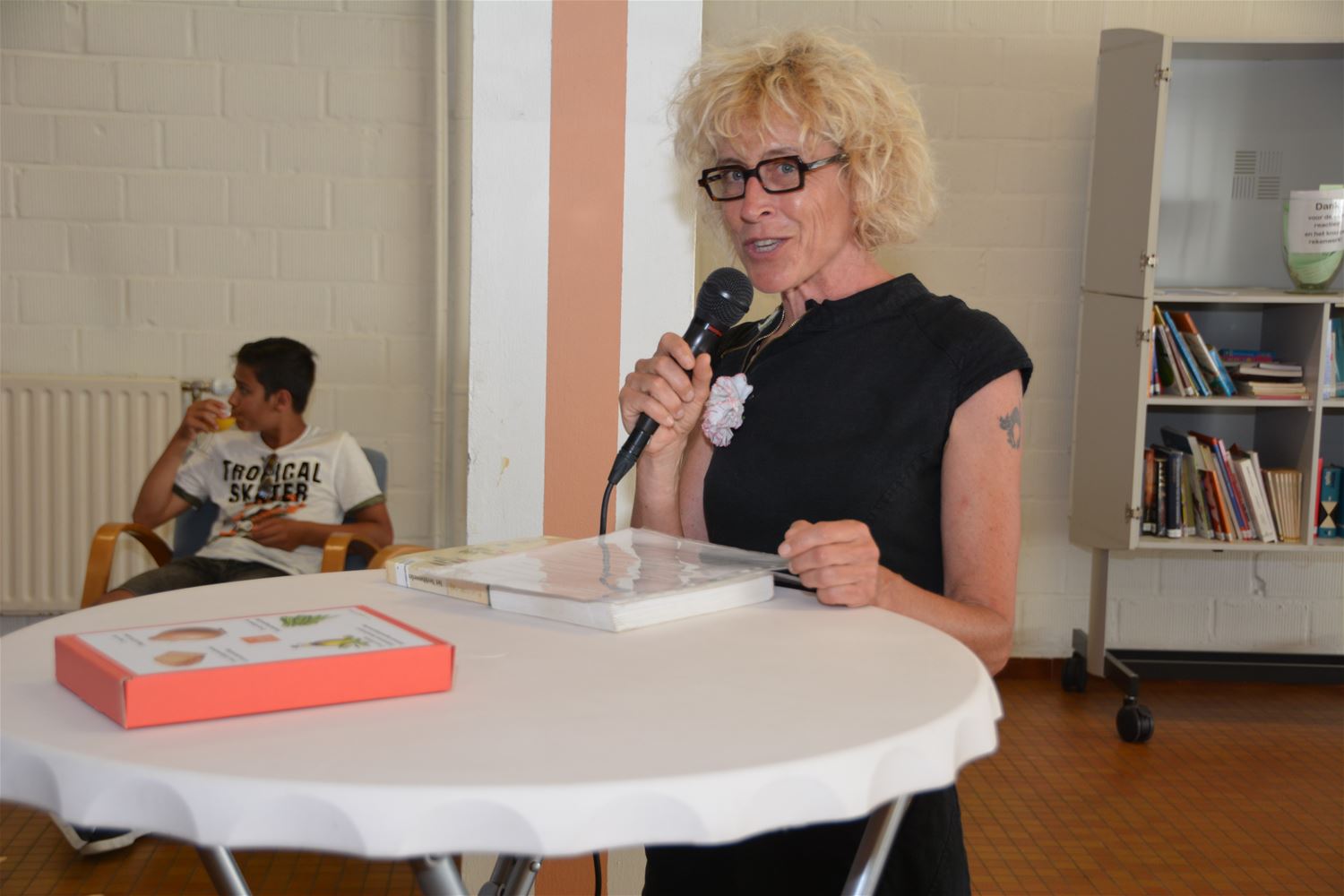 In de ontmoetingsruimte van het Centrum voor Basiseducatie (LiMiNo) hield Het Berenhuis donderdagavond een zomers netwerkevent waar het eindproduct van twee jaar Letterbuffetten werd voorgesteld. Daar waren partnerorganisaties, gemeentediensten en gastlocaties van de Letterbuffetten vertegenwoordigd. Burgemeester Mario Borremans had lof voor de vele inspanningen die Het Berenhuis en zijn projecten leveren om de Nederlandse taal in onze gemeente te stimuleren. Heleen Aerts van het Agentschap Integratie en Inburgering – vanwaar een belangrijke steun komt – had haar toespraak toepasselijk in alfabetvorm gegoten en liet daaruit rijkelijk haar enthousiasme tevoorschijn komen. Gerlinde Gilissen van Het Berenhuis tenslotte dankte de velen die het letterbuffet gastvrij hadden ontvangen en er volop aan hadden meegewerkt. Het project is ondertussen tot ver buiten Heusden-Zolder gekend. Ter afronding van deze twee jaar heeft Het Berenhuis een soort brooddoos gemaakt met daarin de recepten en wegwijzers voor een geslaagd Letterbuffet.