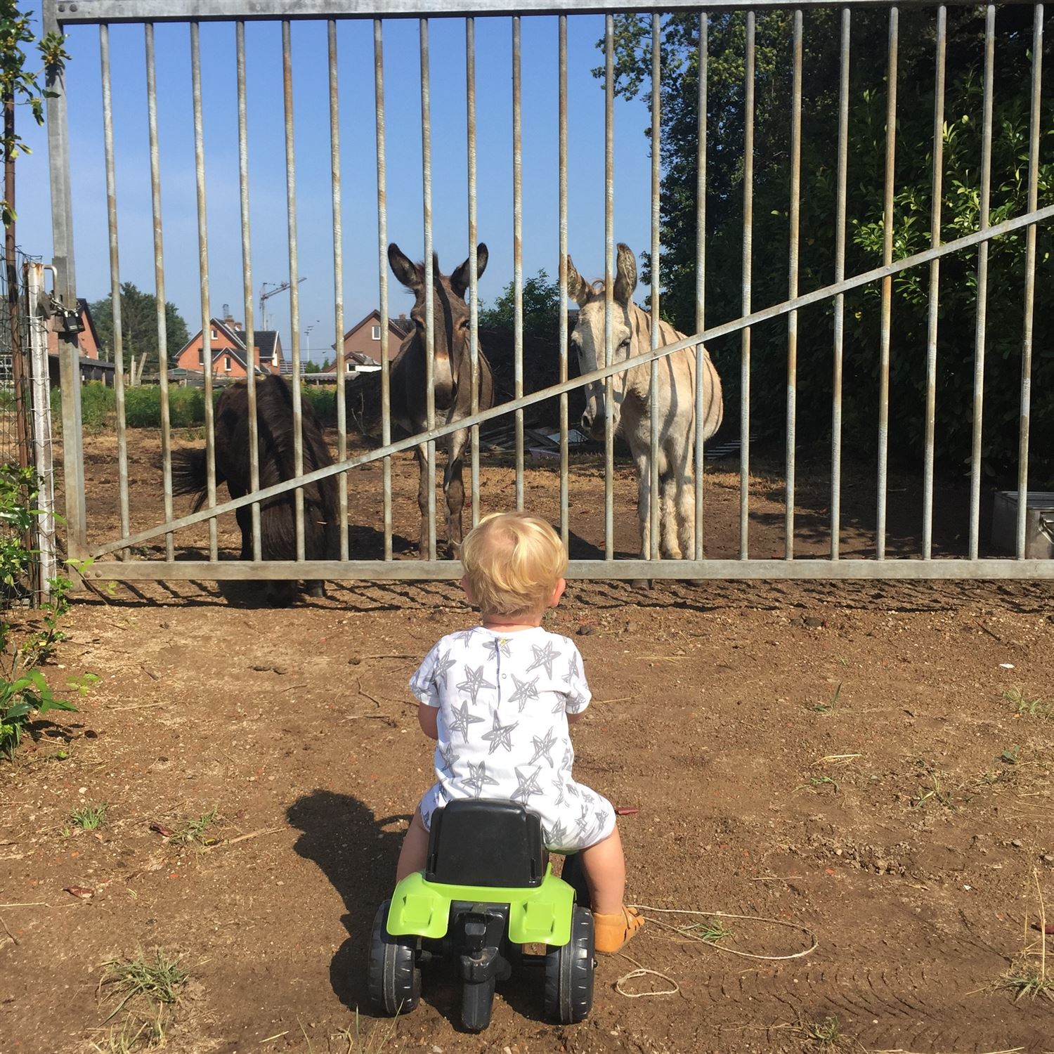 Josette Nijs kreeg helemaal een vakantiegevoel toen Finn met zijn eigen vervoermiddel een bezoekje ging brengen aan de ezels in eigen straat. 61859