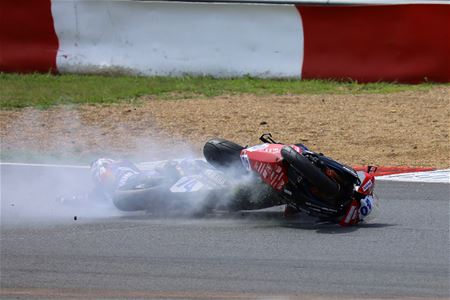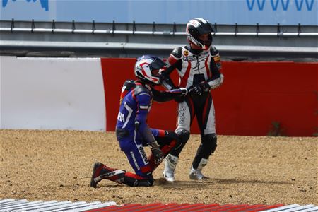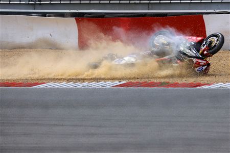 Op drukke races met veel deelnemers zoals de IDM kan het niet anders dan dat er al eens een crash gebeurt, waar één of meer rijders in betrokken zijn. Meestal komen de rijders er van af zonder kleerscheuren en dikwijls kunnen ze de race verder zetten. Marcel Gybels kon één van die crashes van begin tot einde vastleggen. (meer foto's)34828
