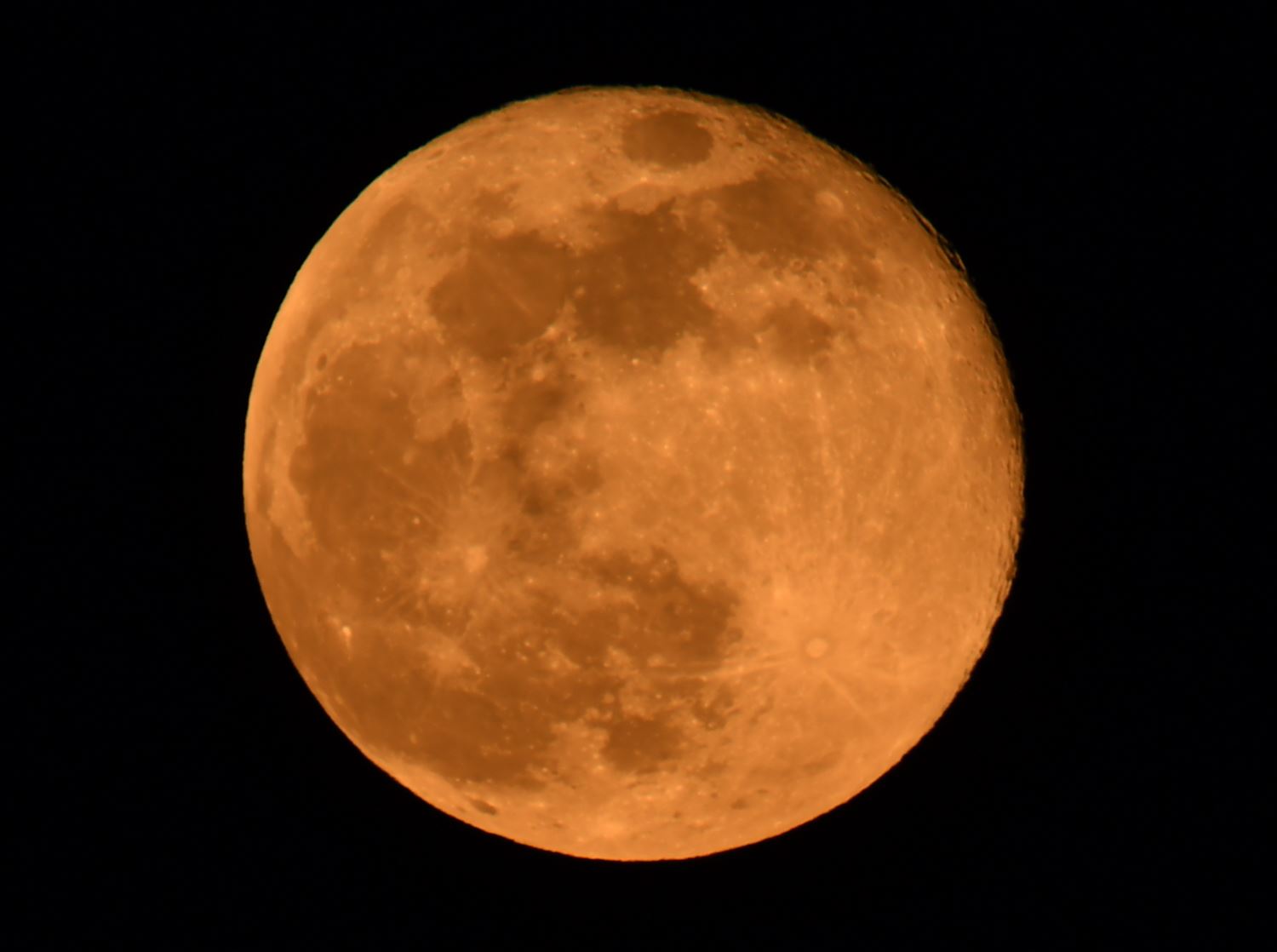 Vorige nacht lachtte de maan ons in volle ornaat toe. Maar deze avond heeft hij er een roodachtige gloed bij gekregen. (foto Michiel Reynders)53432
