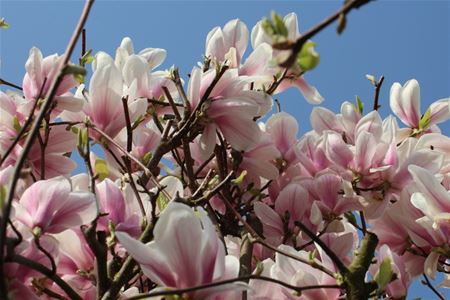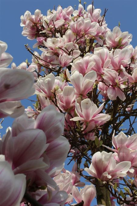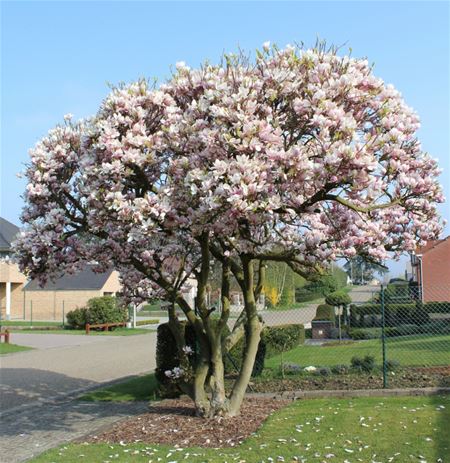 Deze magnolia of beverboom staat momenteel in volle bloemenpracht in de – jawel – boomgaardstraat waar de familie Steyaert er ten volle kan van genieten. In de volksmond noemen we het vaak een tulpenboom. (foto's Tony Sempels)20145