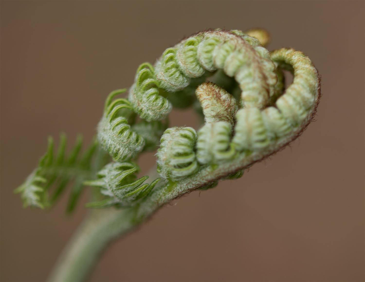 De varens zijn aan het ontluiken. In close-up lijkt het wel een verzameling van rupsen. (foto Estelle Bleux)53734