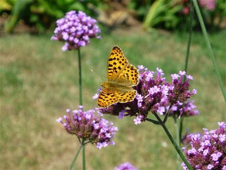 Jos Willems merkte enkele vlinders op die in onze contreien vrij zeldzaam zijn: de Spaanse vlag (foto boven) en de kleine parelmoervlinder (foto onder).13810
