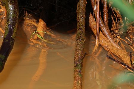 Geen regen vandaag en dus werkte de overloop van de Mangelbeek in Zolder maar druppelsgewijs. Marcel Gybels fotografeerde enkele druppels en meteen nadien de ringen die ze in het water maakten.28111