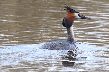Deze eendjes en fuut stoorden zich vandaag duidelijk niet tijdens hun zwembeurt in De Wijers. Meer nog, de fuut liet zich trots van beide kanten bewonderen. (foto's Marcel Gybels)27448