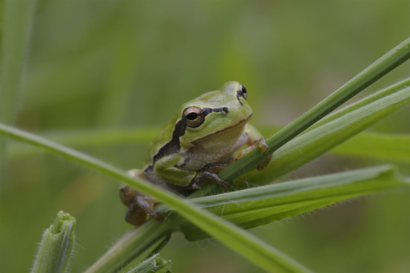 Al een 14-tal dagen zitten de boomkikkers te zonnen op tal van plaatsen in het Bolderdal. Vooral in de late avond geven ze damen een kikkerconcert. Dit exemplaar kwam gewoon op bezoek bij Jan Leijskens in de tuin, die wilde persé op de foto staan.45414